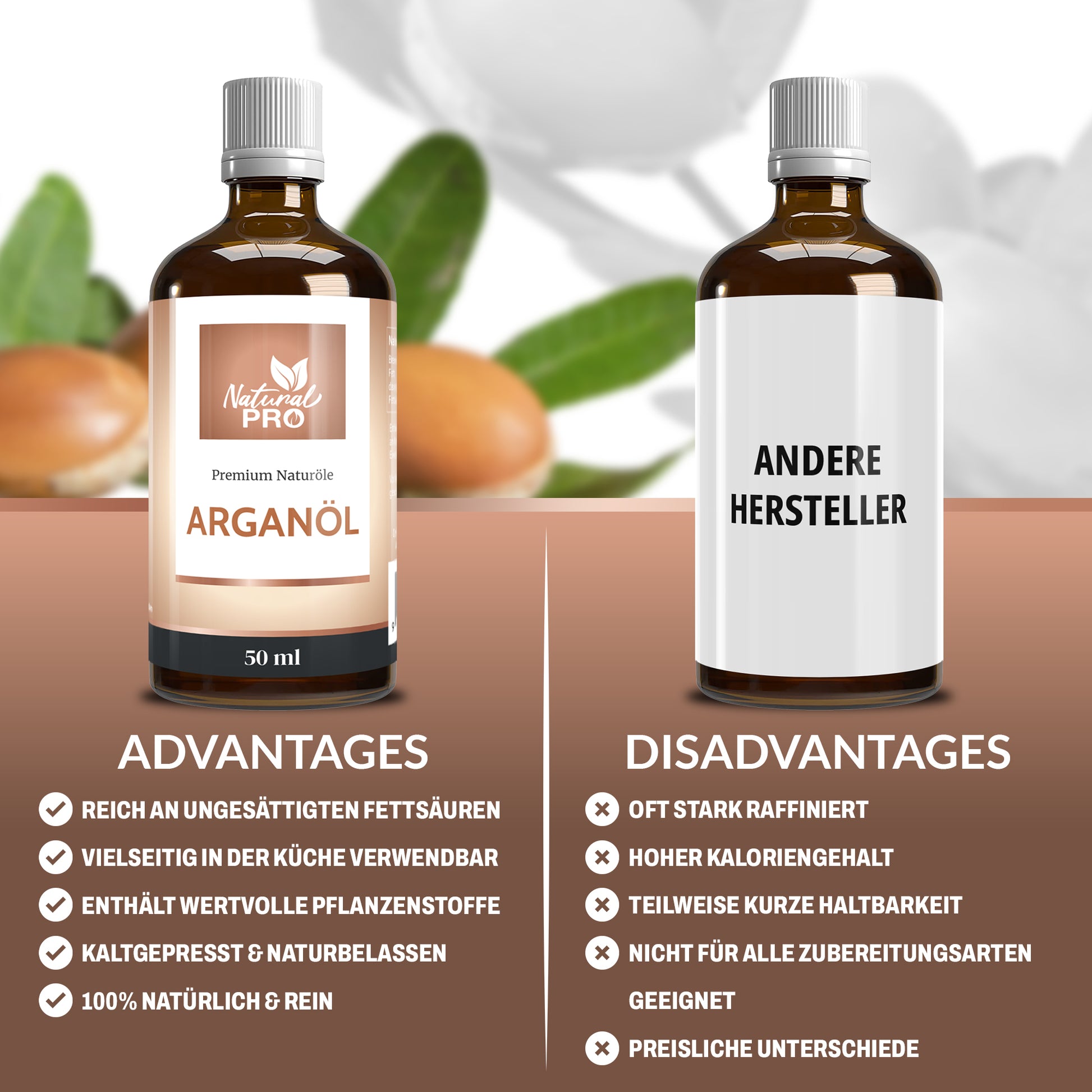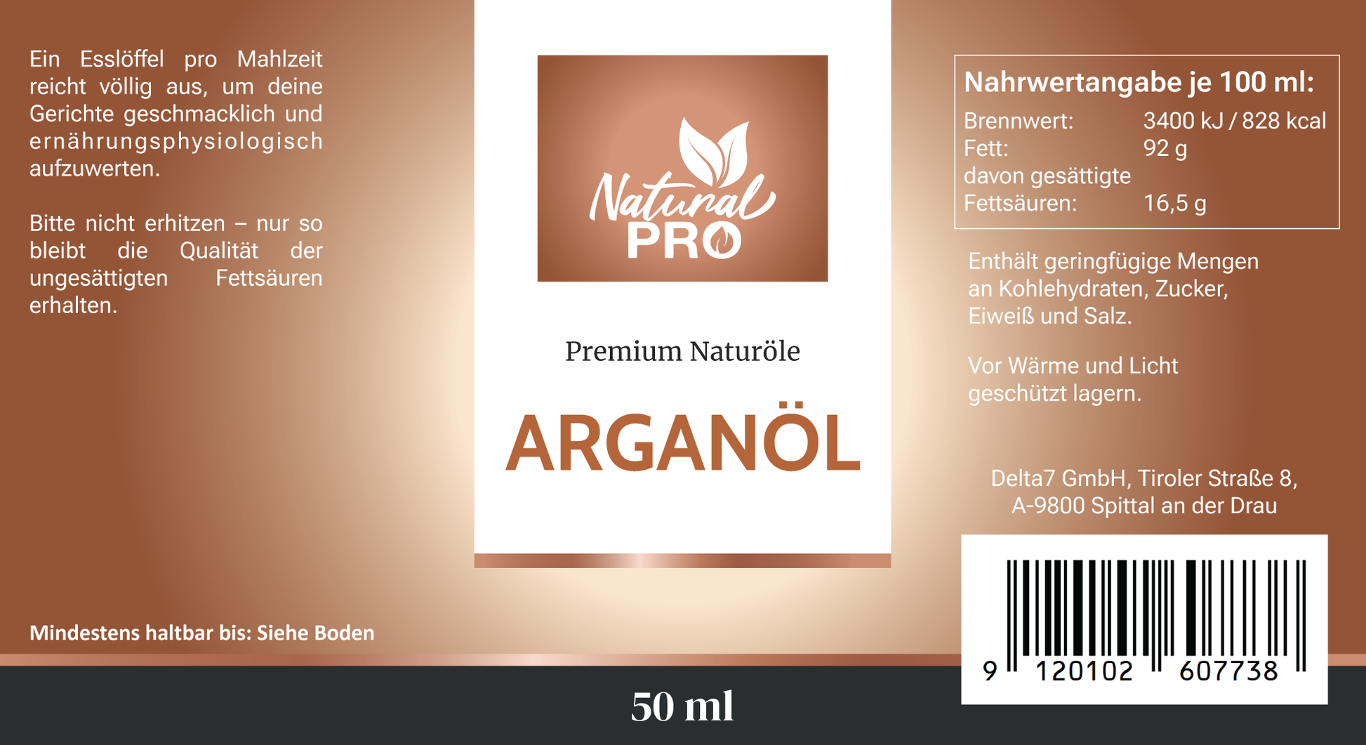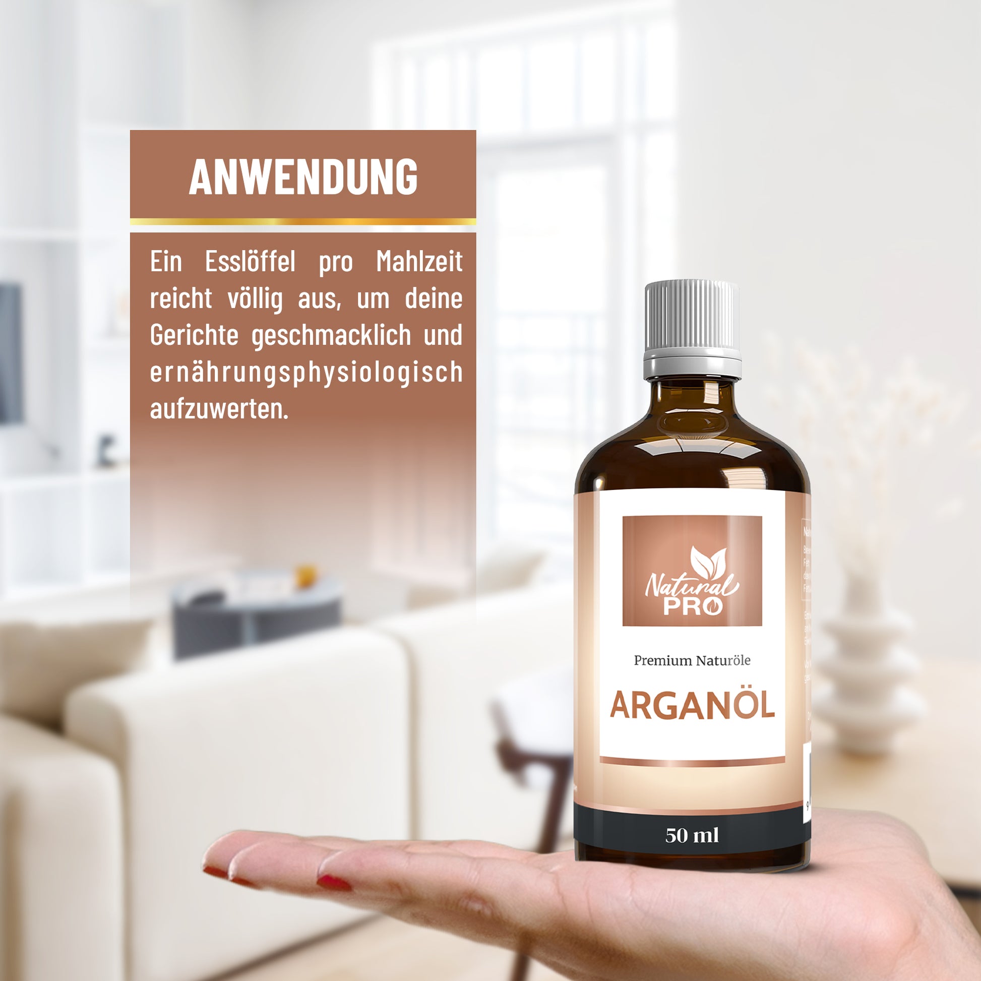 Das Arganöl wird besonders schonend kaltgepresst und ist zu 100 % unraffiniert. So bleiben die empfindlichen Nährstoffe vollständig erhalten. Die praktische 50 ml Flasche eignet sich ideal für Feinschmecker, Hobbyköche und alle, die Wert auf Qualität legen.