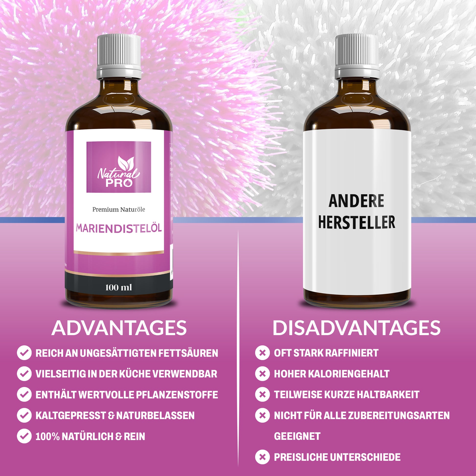 Mariendistelöl | Kaltgepresst & Naturrein | Edles Speiseöl voller ungesättigter Fettsäuren