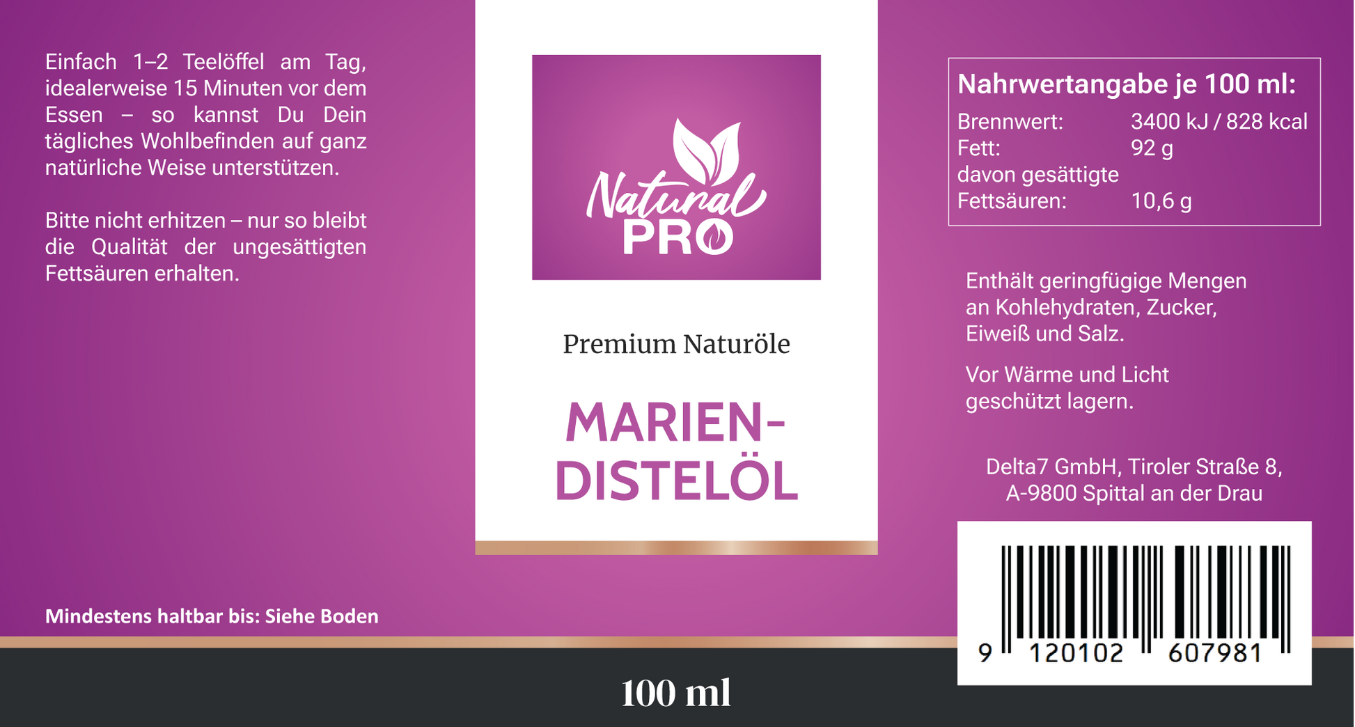 Wenn Du auf der Suche nach einem hochwertigen Pflanzenöl bist, das Deine Küche nicht nur geschmacklich, sondern auch gesundheitlich bereichert, dann ist das Mariendistelöl von Natural Pro genau das Richtige für Dich!