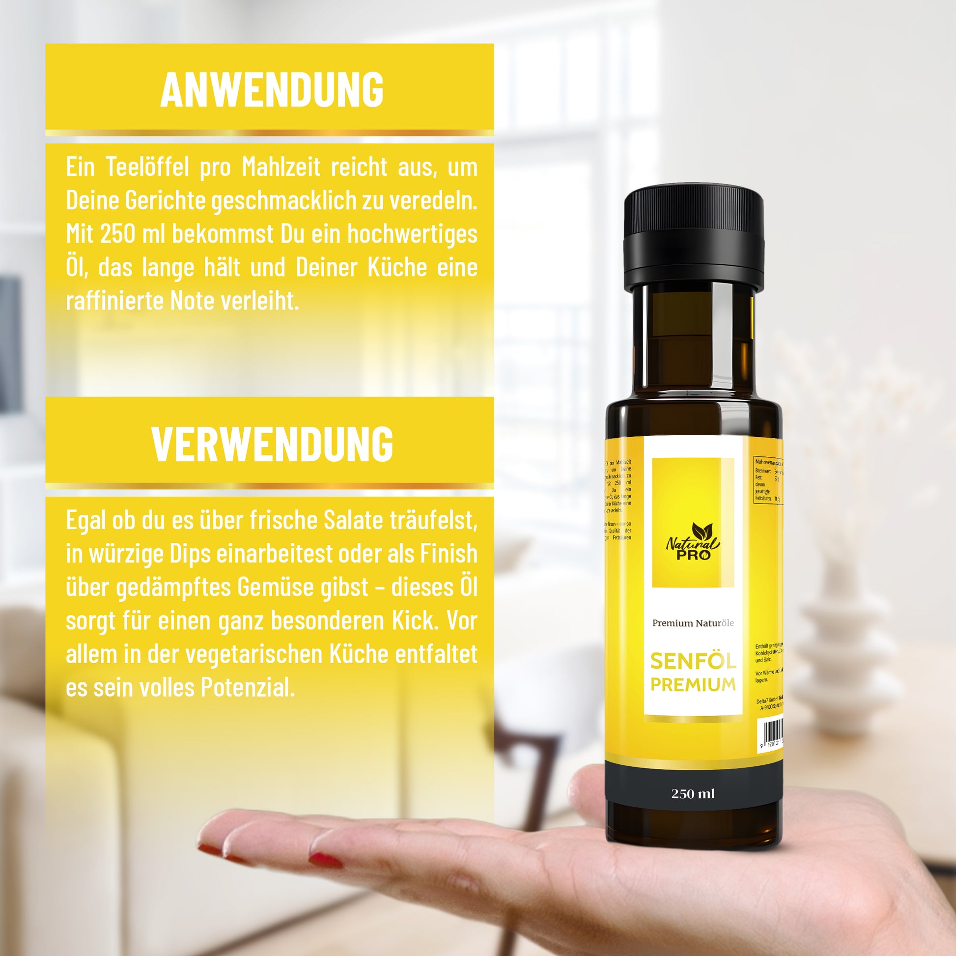 Wenn Du auf der Suche nach einem besonderen, würzigen Öl bist, das nicht nur Geschmack, sondern auch Qualität liefert – dann ist das Senföl Premium genau das Richtige für Dich!