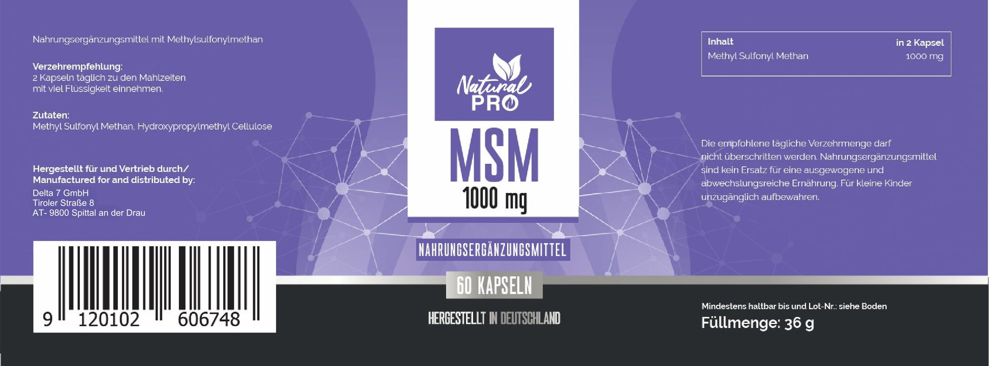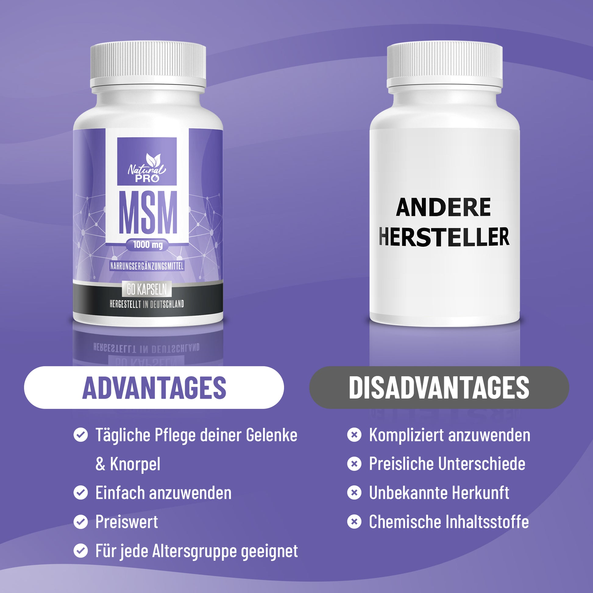 MSM 1000mg hochdosiert | Für gesunde Gelenke & Haut | 60 Kapseln